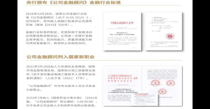 "title": "公司金融行业标准和国家新职业",