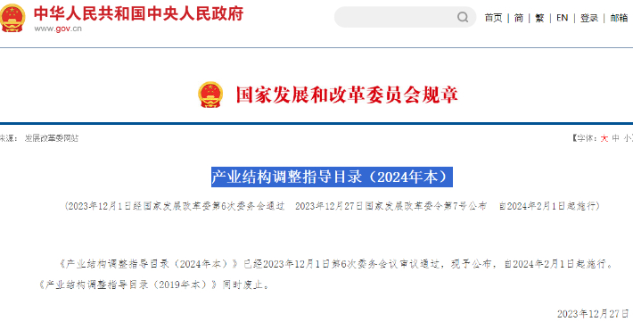 "title": "产业结构调整指导目录(2024年本)",