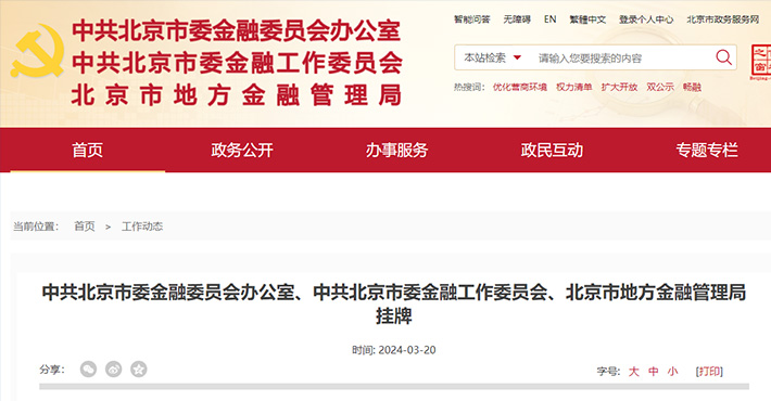 "title": "中共北京市委金融委员会办公室、中共北京市委金融工作委员会、北京市地方金融管理局挂牌",